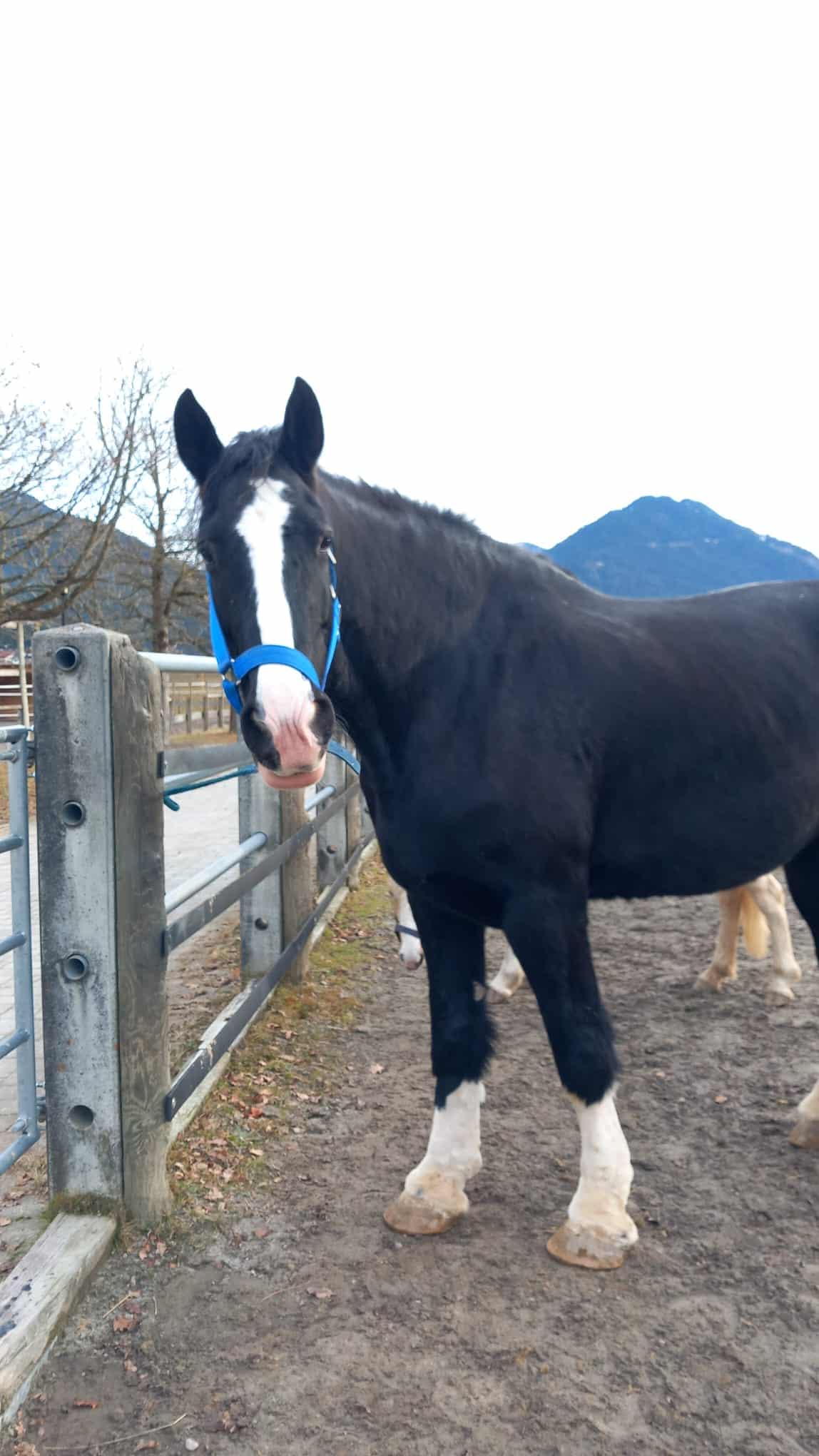 Die bildschöne, 10-jährige Shire-Horse-Stute Sapphire (Stockmaß: 191 cm) fand im Sommer den Weg zu uns in die Pferdeklappe. In den vergangenen Monaten konnte sich die sanfte Riesin gut bei uns einleben und ist nun bereit für ihr „Für-immer-Zuhause“.