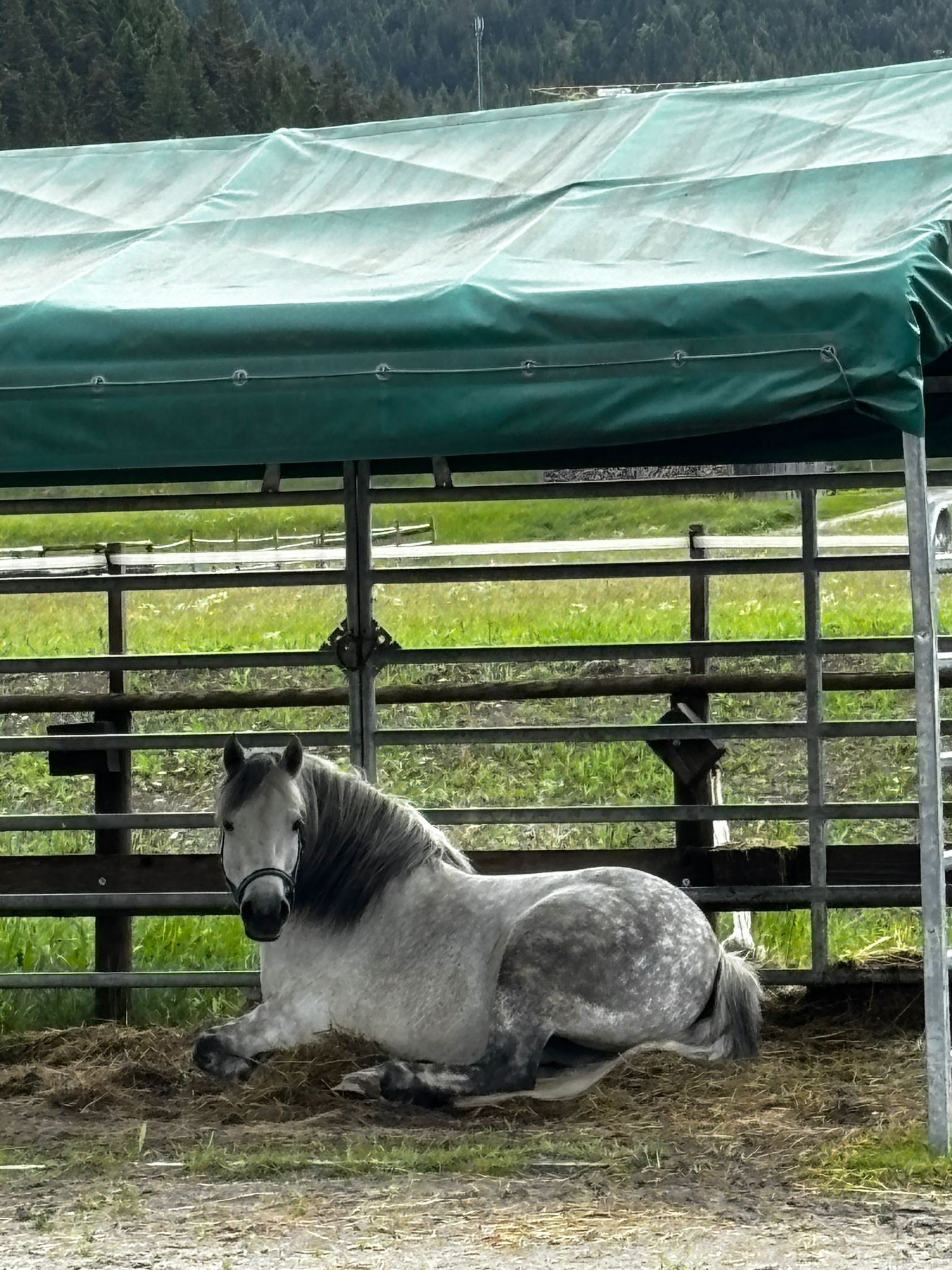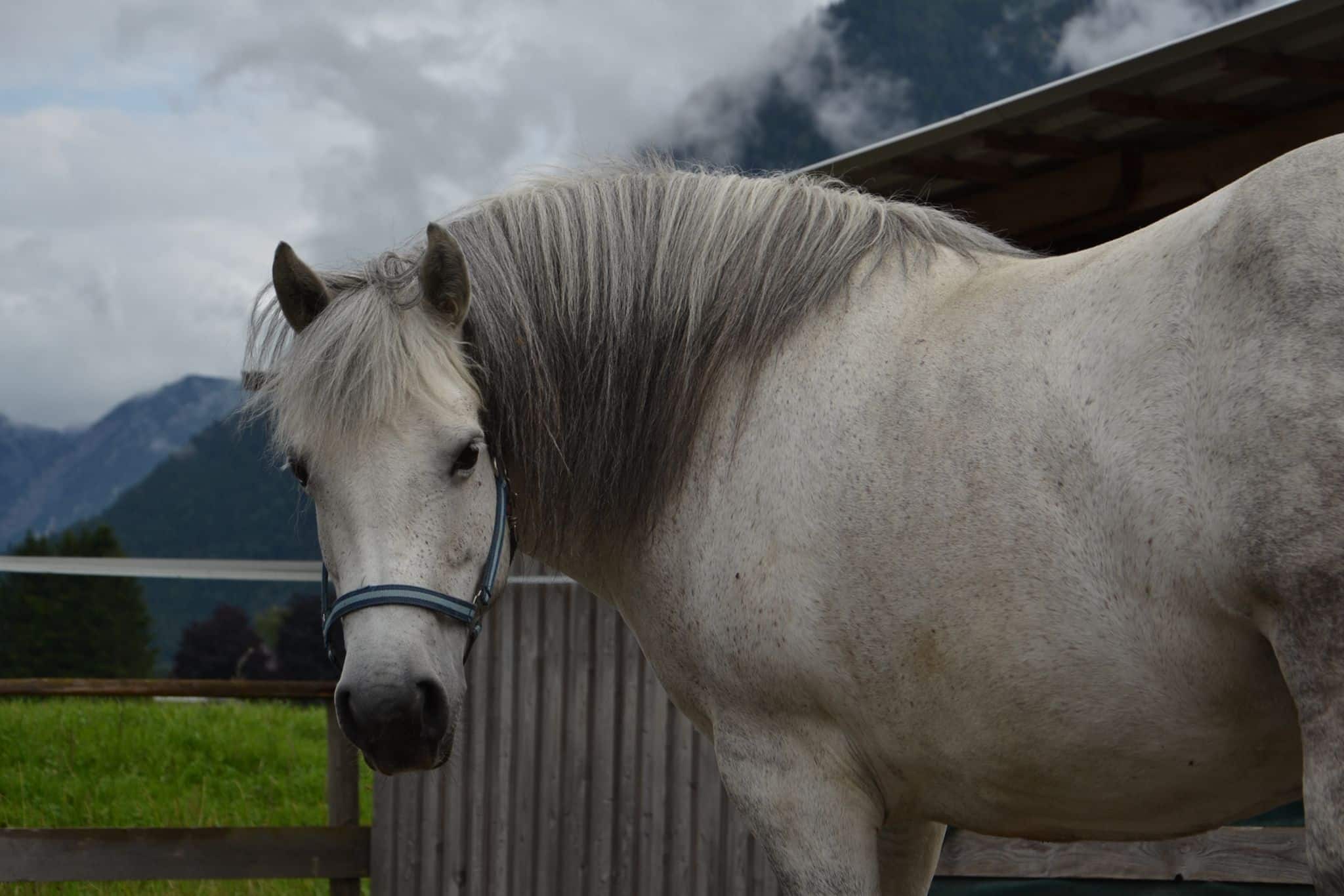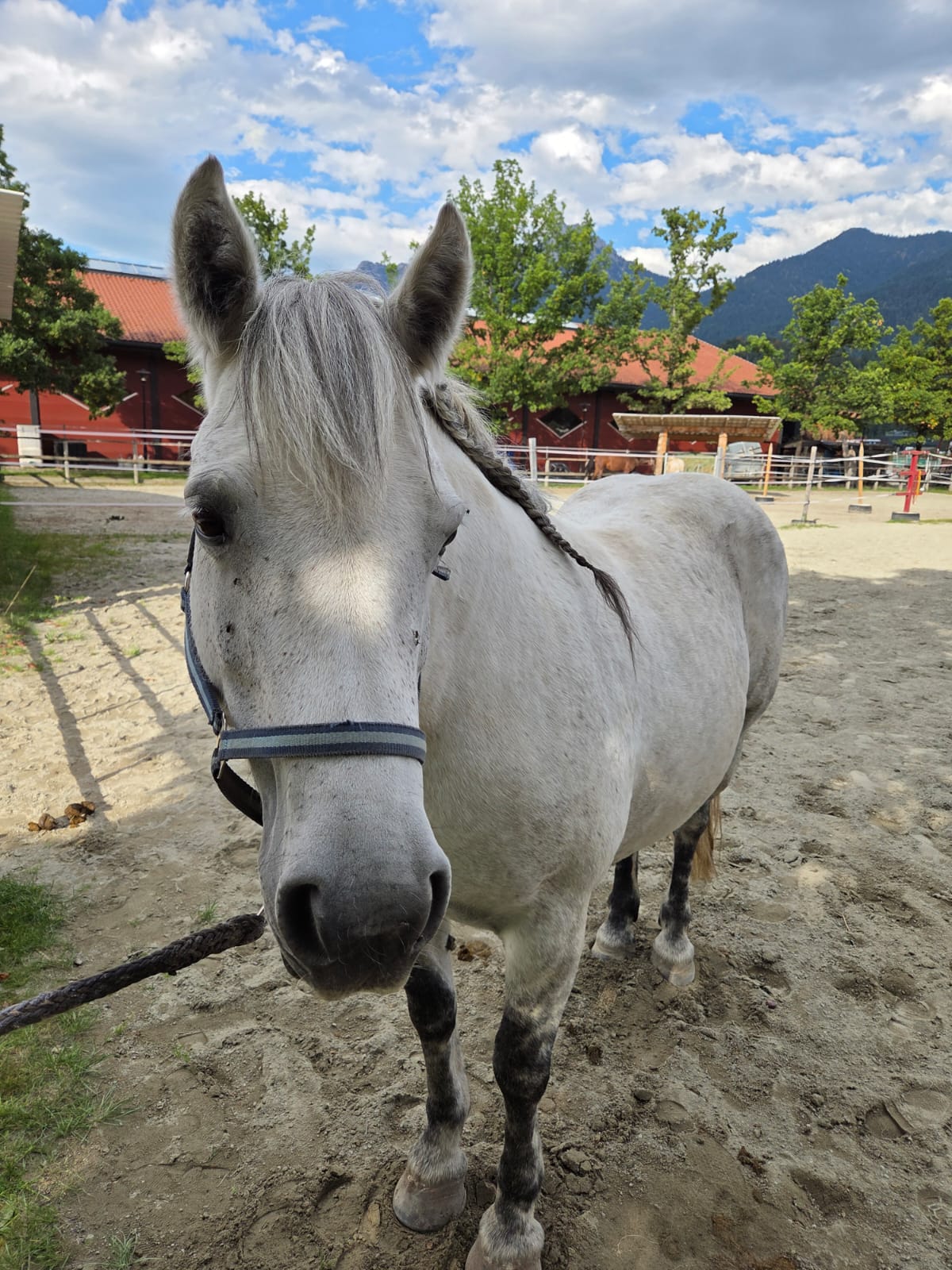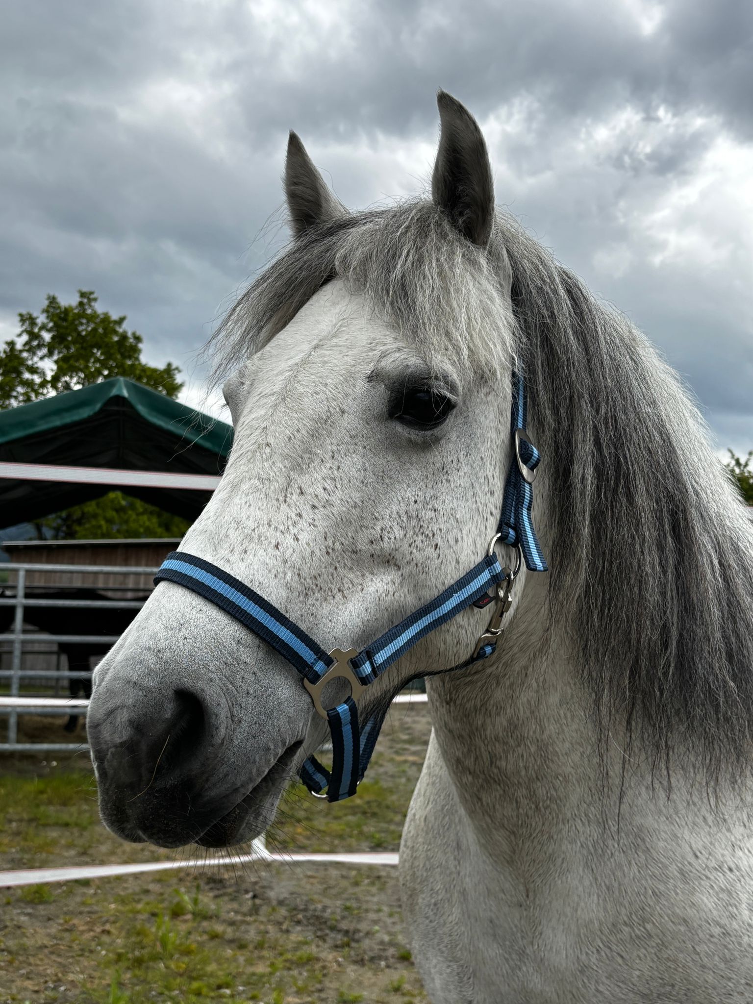 Die hübsche, achtjährige spanische Pony-Stute Mariposa (Stockmaß ca. 140 cm) – von uns liebevoll Marie genannt – fand im Frühjahr, nachdem ihr Partnerpferd verstorben war, den Weg zu uns in die Pferdeklappe.