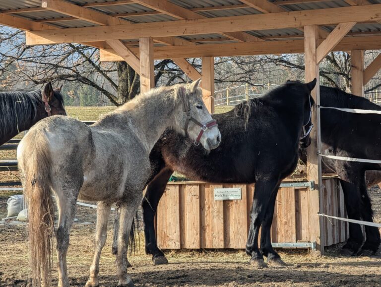 Dank einer behördlichen Abnahme konnten die drei Pferde aus dieser schlimmen Situation gerettet werden. In unserer Pferdeklappe haben sie nun endlich einen sicheren Ort gefunden, an dem sie zur Ruhe kommen und erstmals Schutz, Wärme und Fürsorge erfahren dürfen.