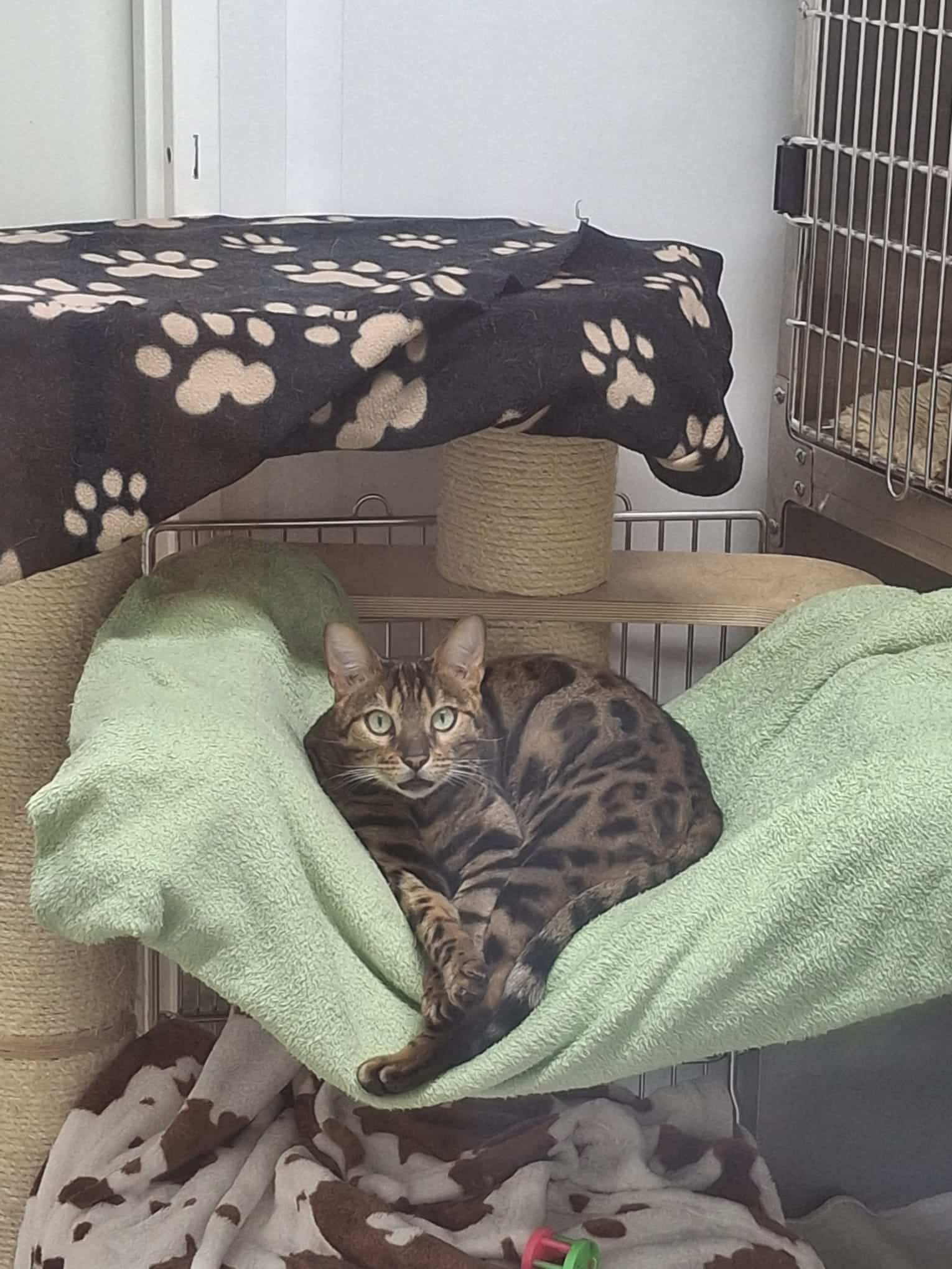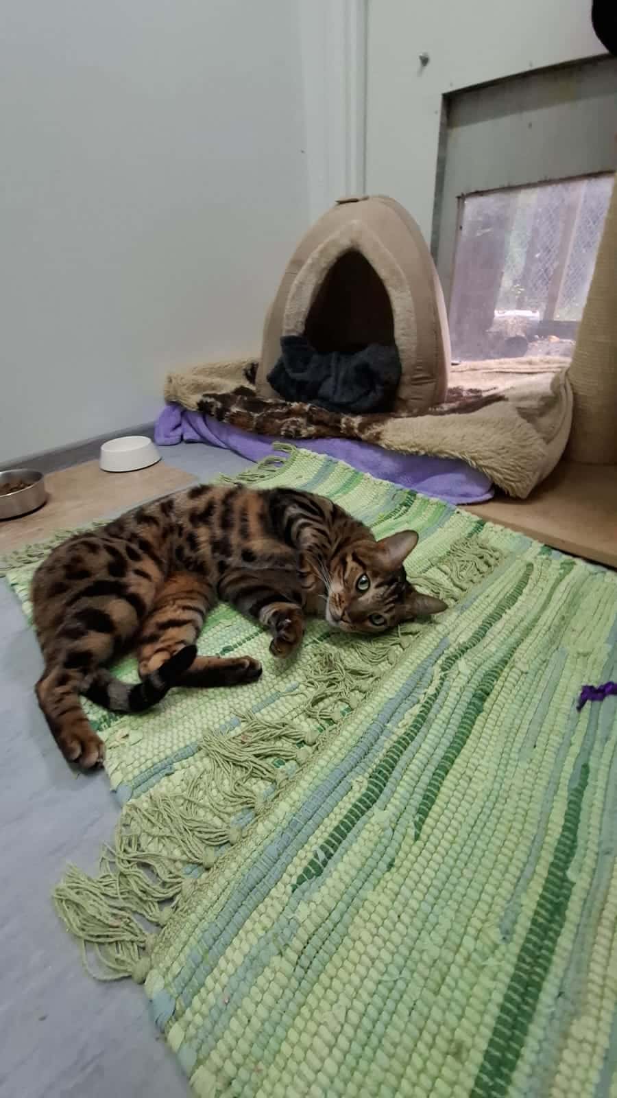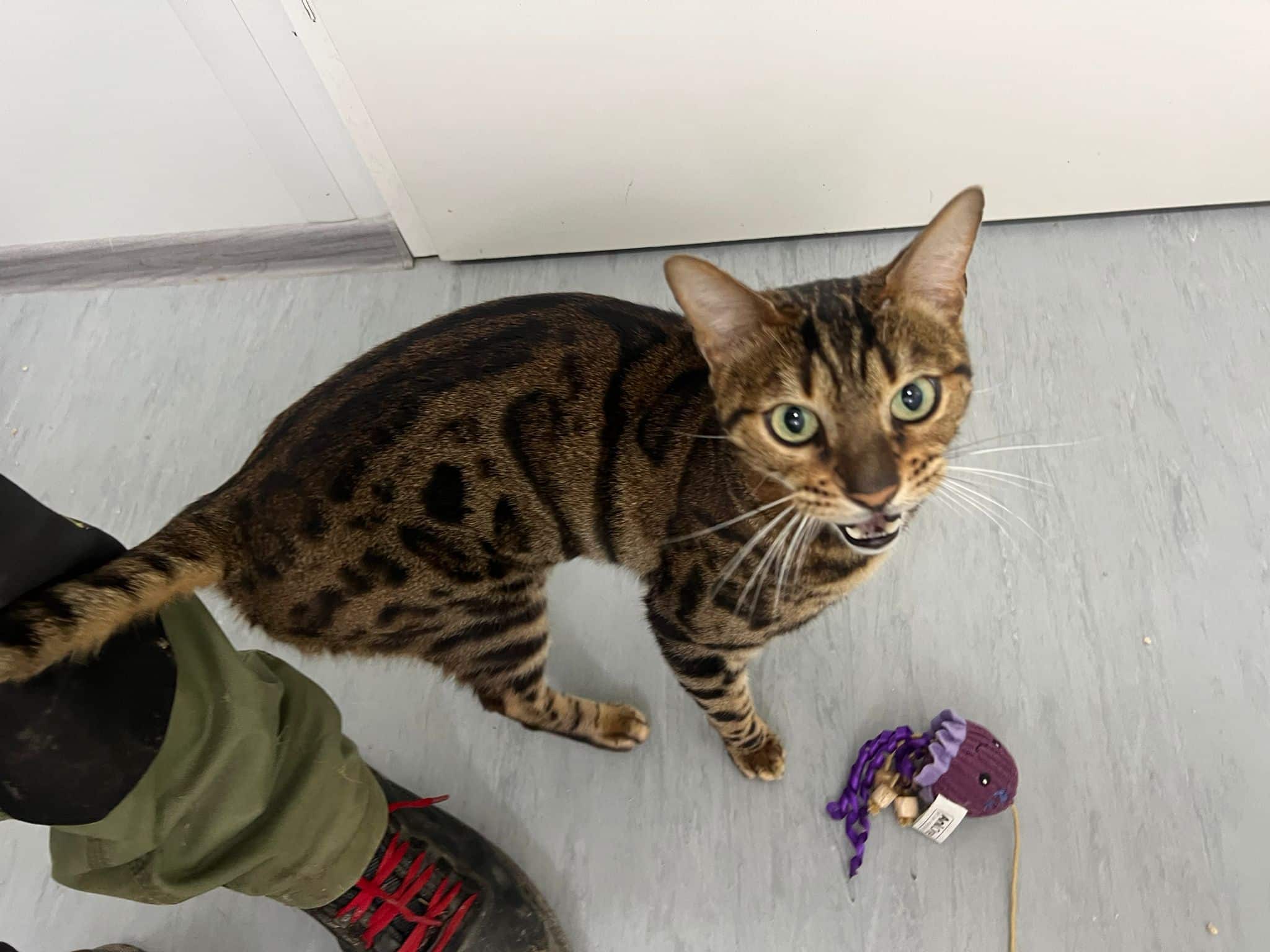 Unser wunderschöner Bengalen-Kater Diego (4 Jahre jung) hat leider sein Zuhause verloren, da das Zusammenleben mit seinem samtpfotigen Mitbewohner nicht mehr möglich war. Diego ist ein überaus neugieriger, aktiver und intelligenter Kater – ganz rassetypisch liebt er die Nähe zum Menschen und ist sehr kommunikativ. Bengalen haben ein besonders hohes Energielevel und brauchen daher viel Beschäftigung, Bewegung und Abwechslung.